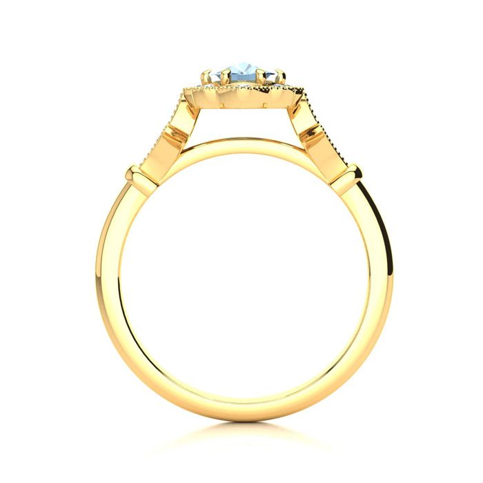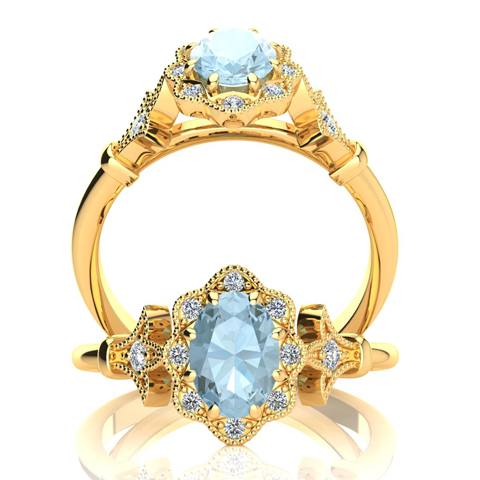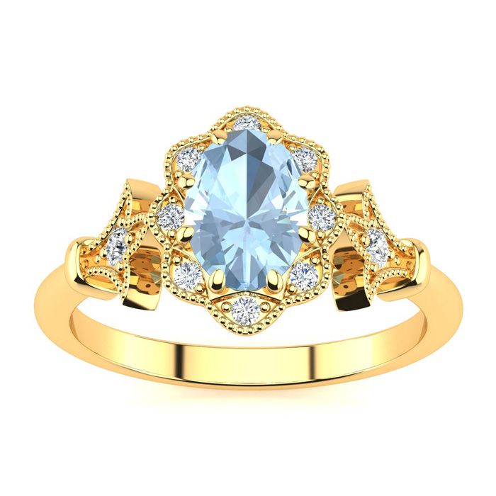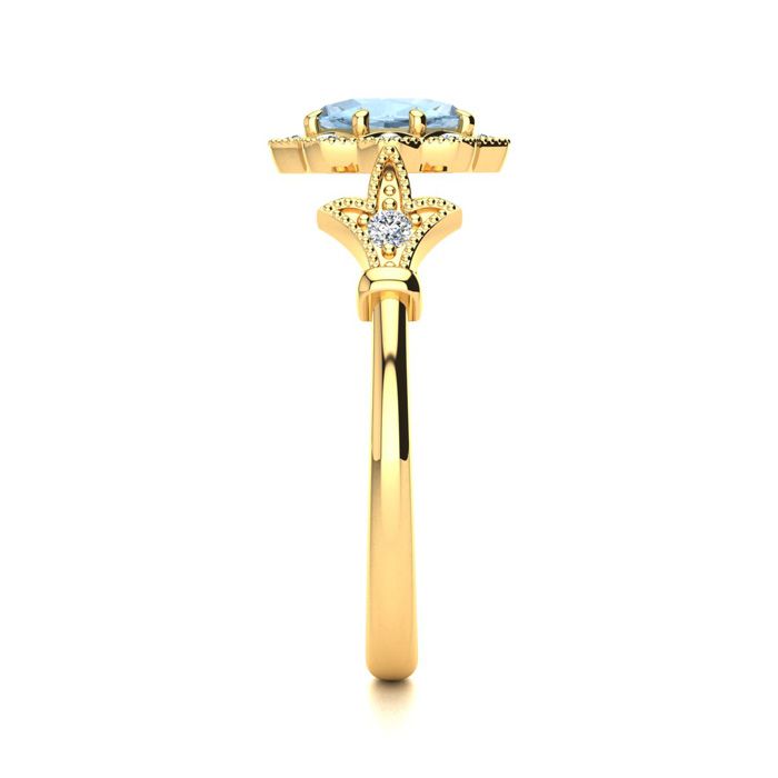 1 Carat Oval Shape Aquamarine and Halo Diamond Vintage Ring In 14 Karat Yellow Gold