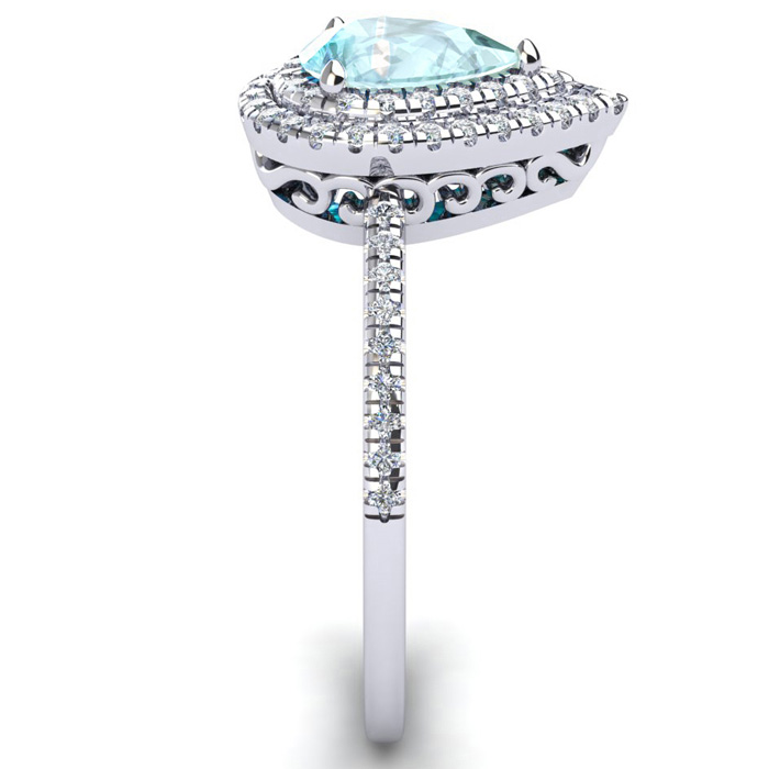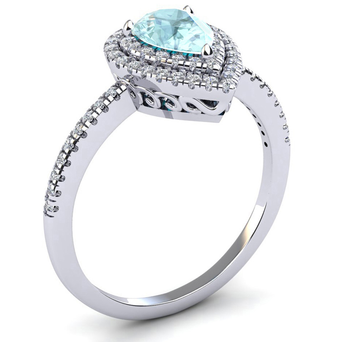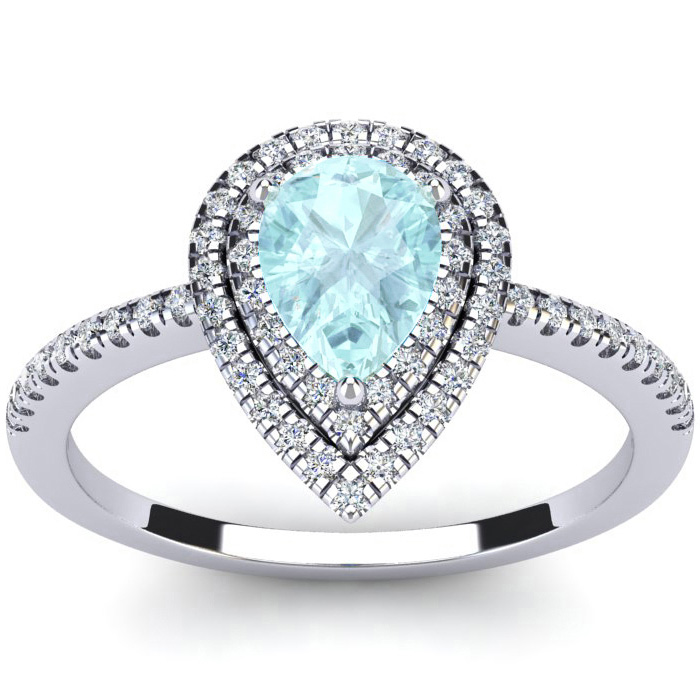 1 Carat Pear Shape Aquamarine and Double Halo Diamond Ring In 14 Karat White Gold