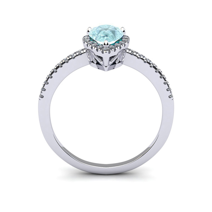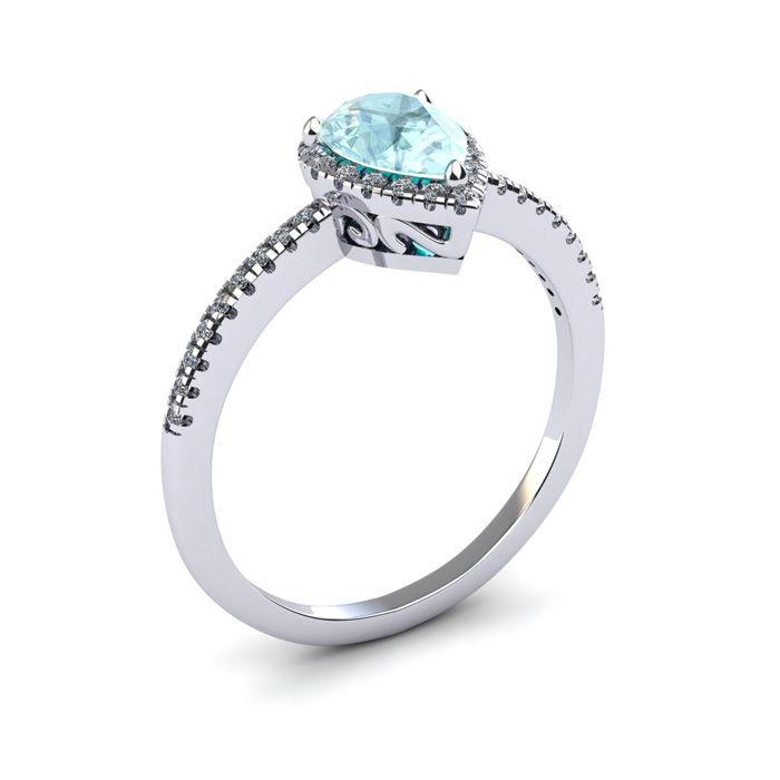 1 Carat Pear Shape Aquamarine and Halo Diamond Ring In Sterling Silver
