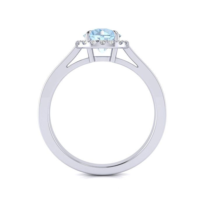 1 Carat Round Shape Aquamarine and Halo Diamond Ring In 14 Karat White Gold