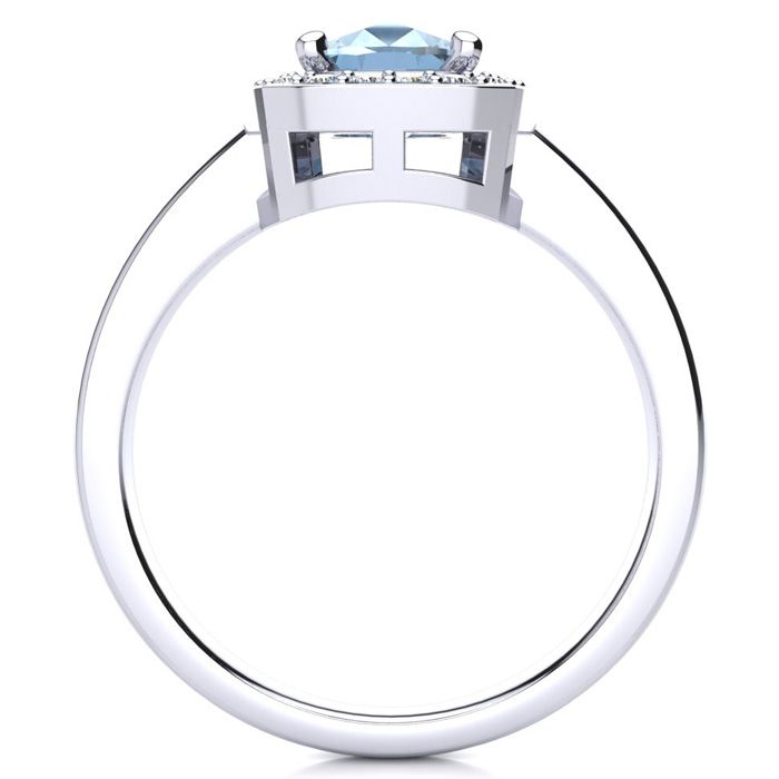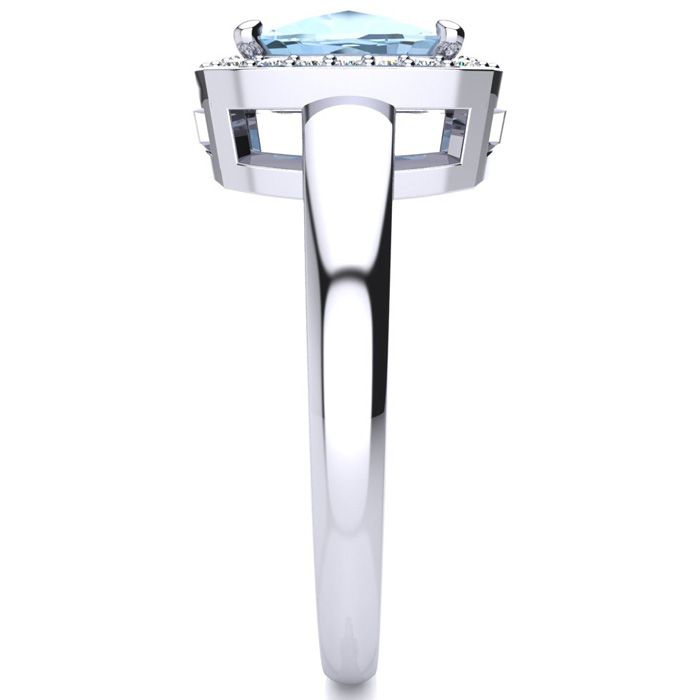 2 1/3 Carat Cushion Cut Aquamarine and Halo Diamond Ring In 14 Karat White Gold
