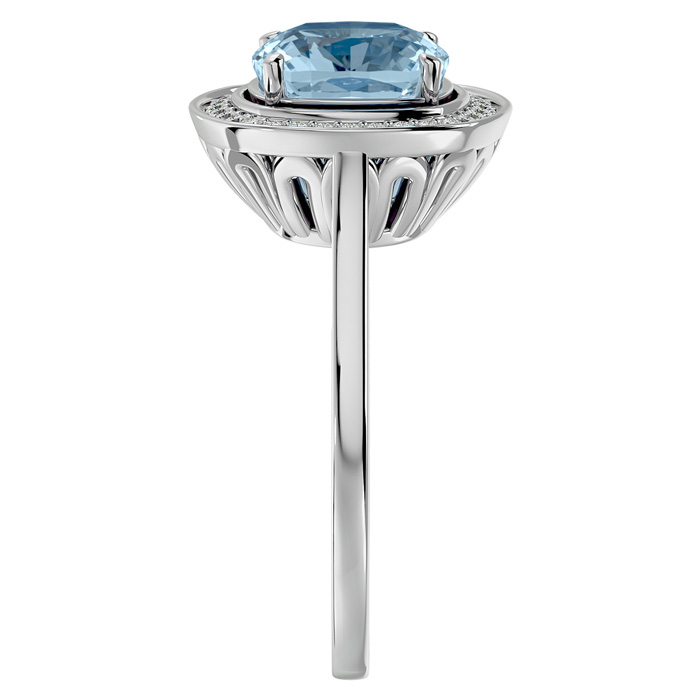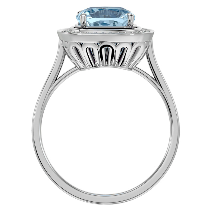 2 1/4 Carat Cushion Cut Aquamarine and Halo Diamond Ring In 14K White Gold