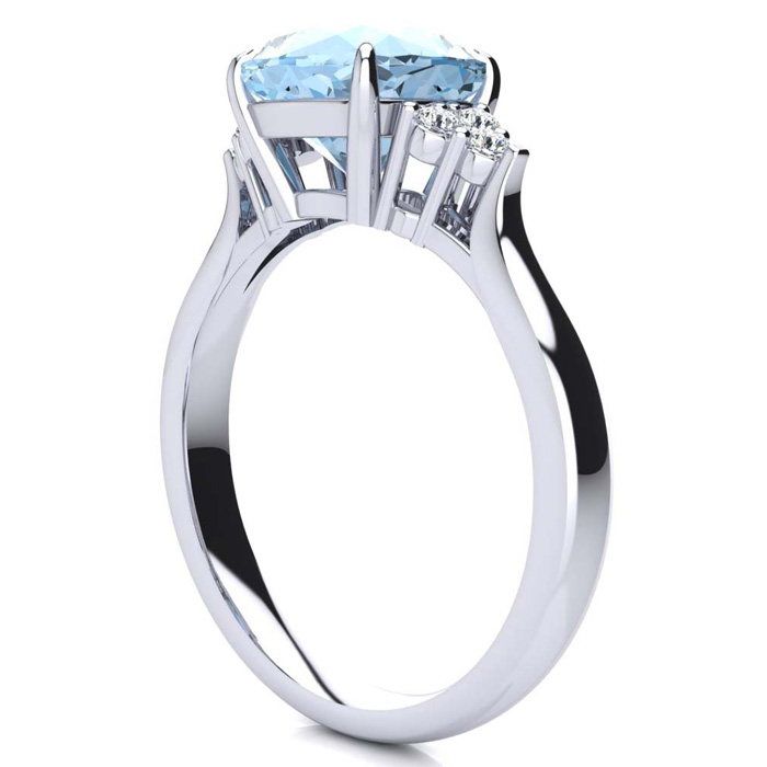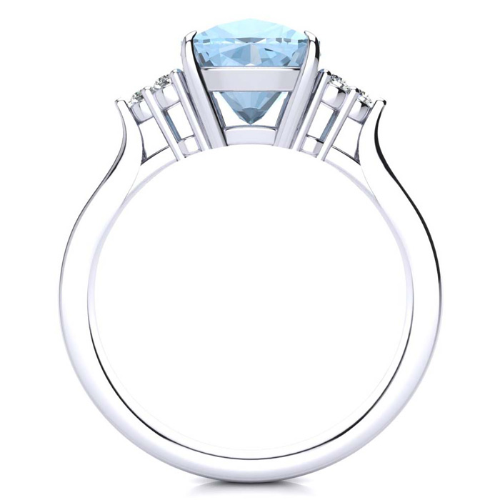 2 1/5 Carat Cushion Cut Aquamarine and Diamond Ring In 14K White Gold