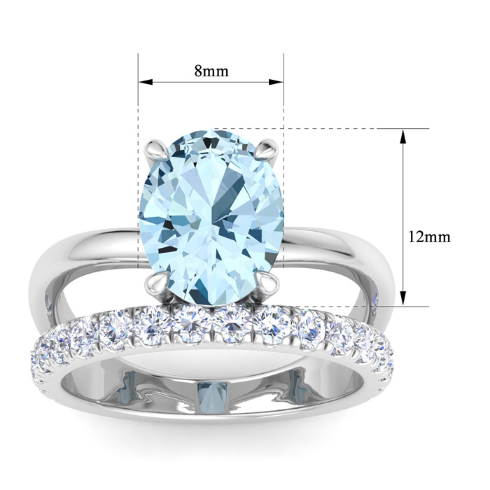 2 3/4 Carat Oval Shape Aquamarine and Halo Diamond Ring Plus Band In 14 Karat White Gold