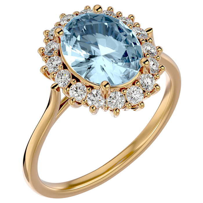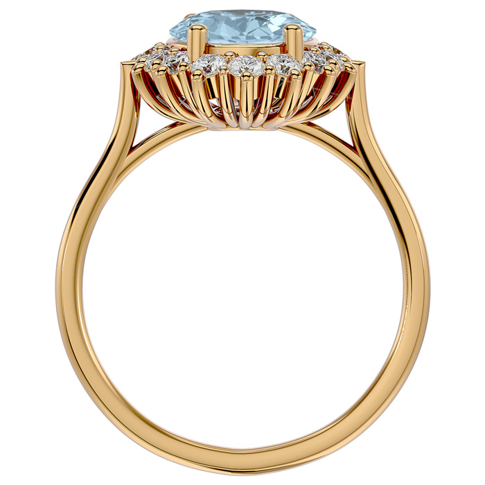 2 3/4 Carat Oval Shape Aquamarine and Halo Diamond Ring In 14 Karat Yellow Gold