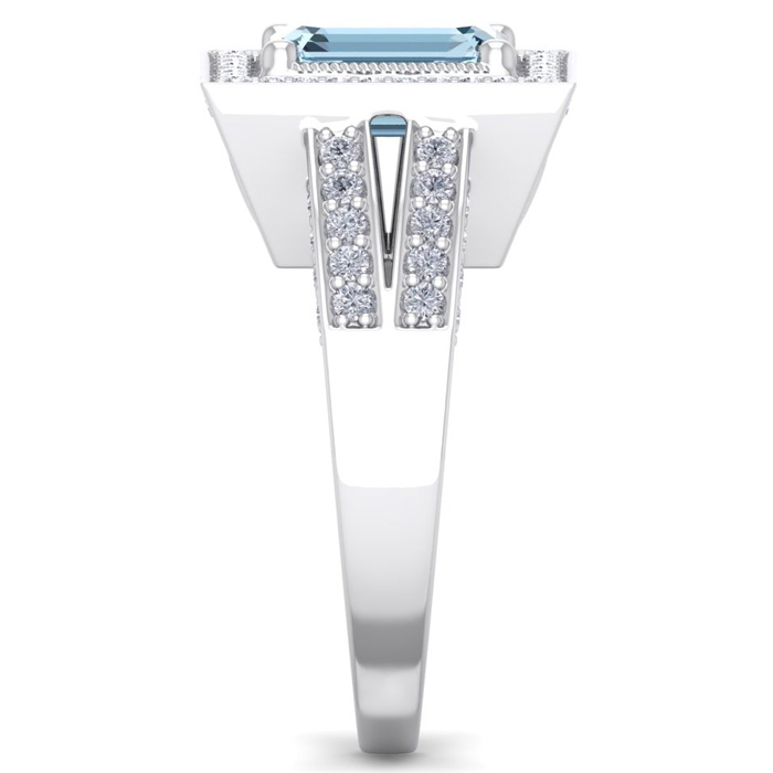 2 Carat Aquamarine and Halo Diamond Ring In 14 Karat White Gold