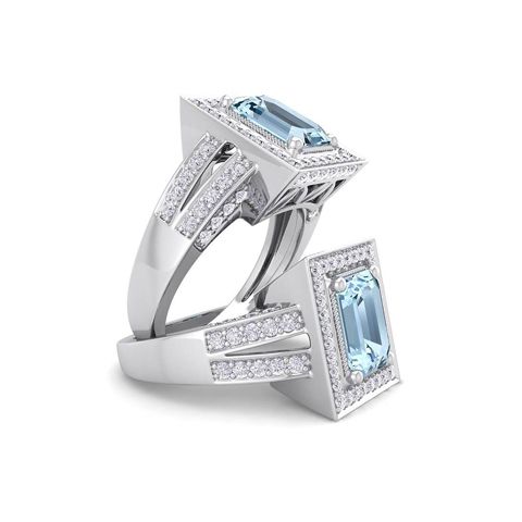 2 Carat Aquamarine and Halo Diamond Ring In 14 Karat White Gold