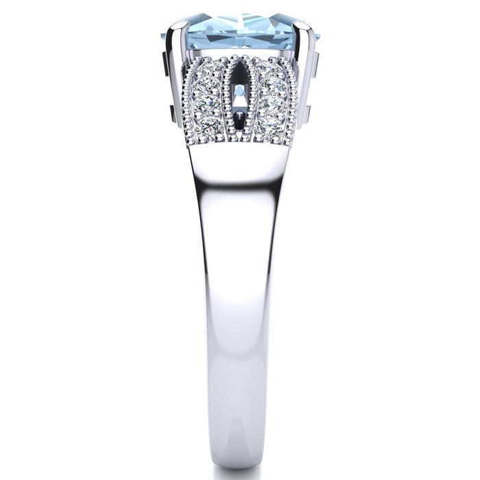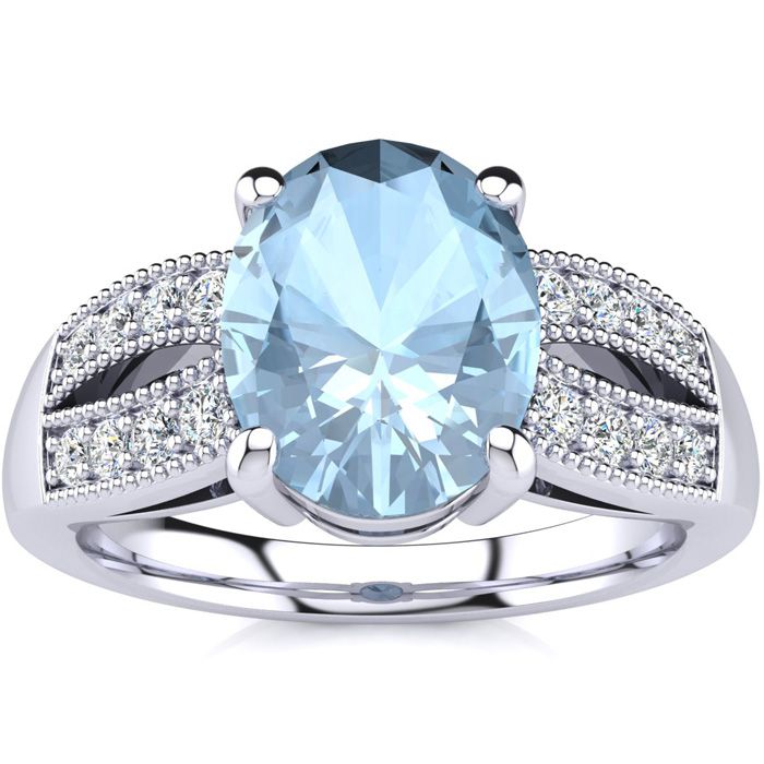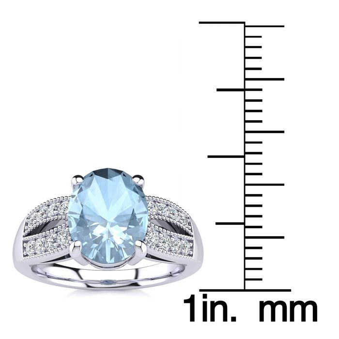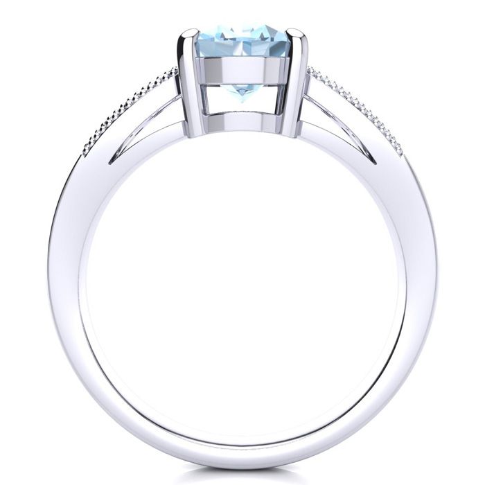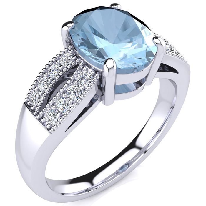 2 Carat Oval Shape Aquamarine and Diamond Ring In 14 Karat White Gold