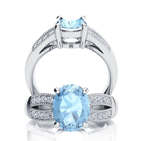 2 Carat Oval Shape Aquamarine and Diamond Ring In 14 Karat White Gold