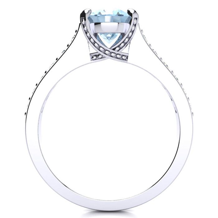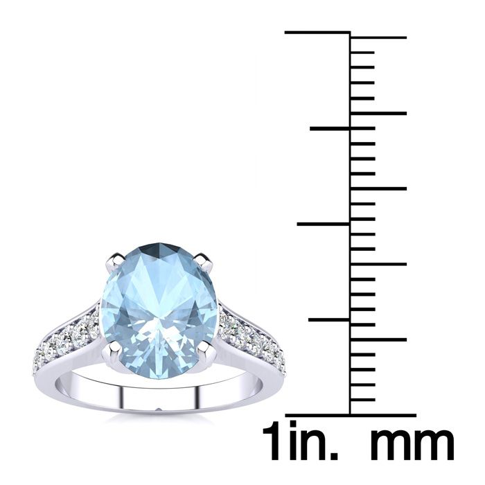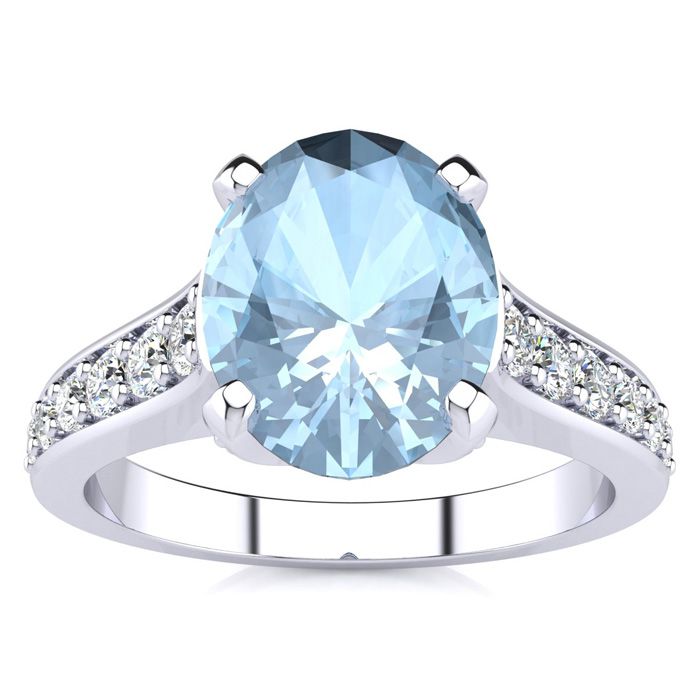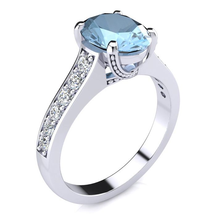 2 Carat Oval Shape Aquamarine and Diamond Ring In 14 Karat White Gold