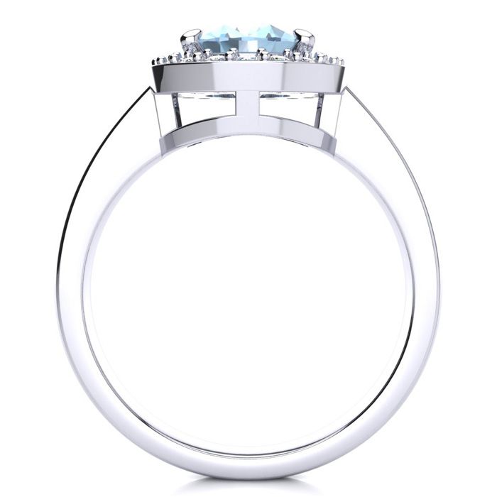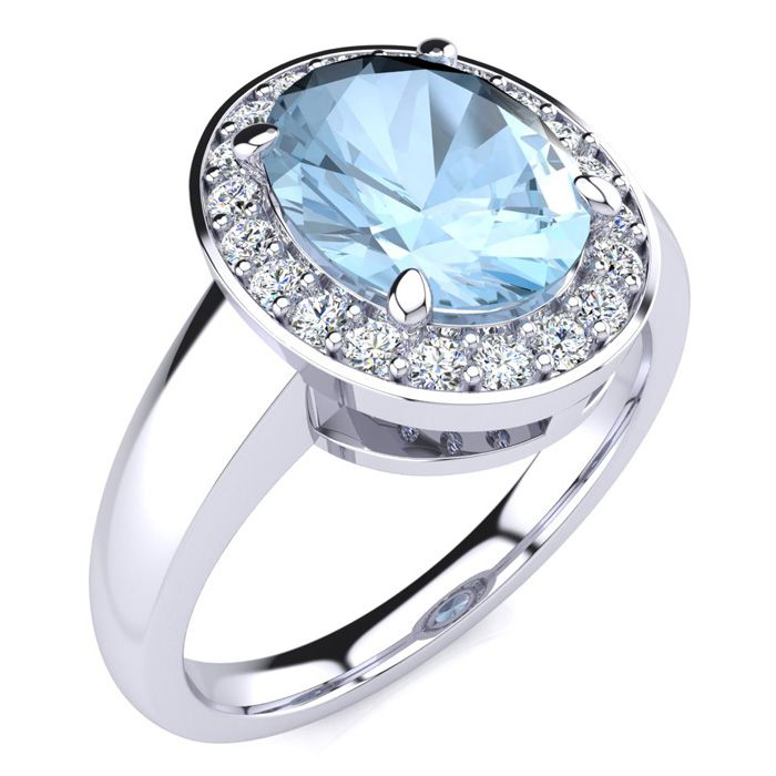 2 Carat Oval Shape Aquamarine and Halo Diamond Ring In 14 Karat White Gold