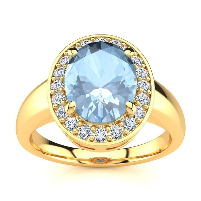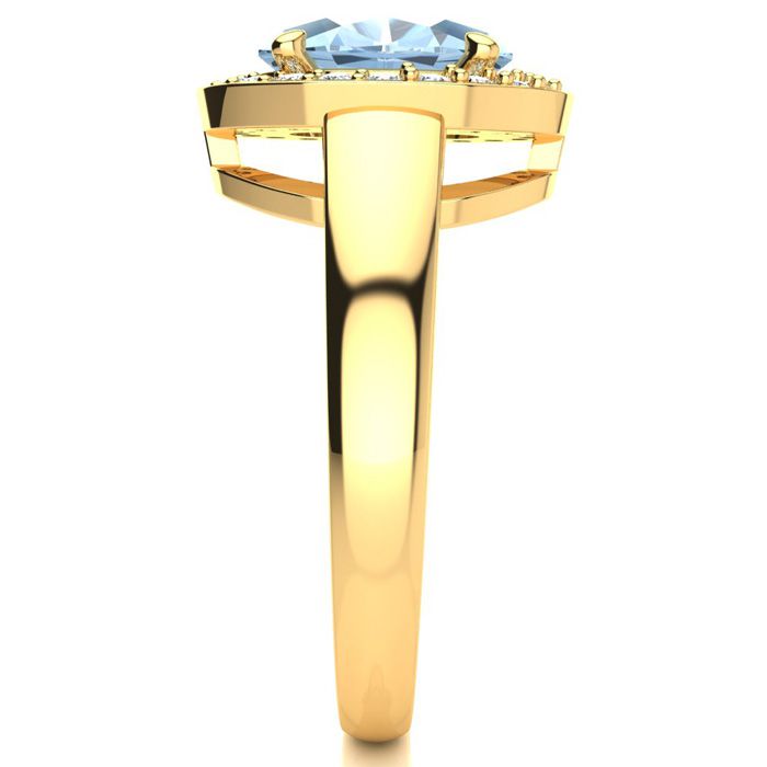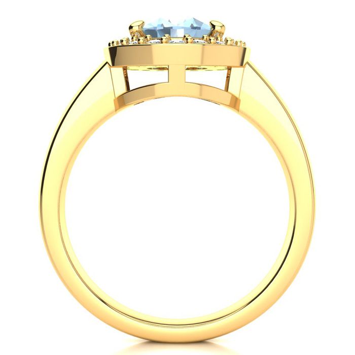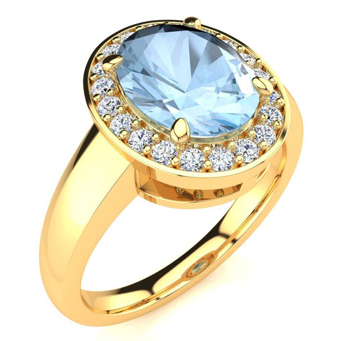 2 Carat Oval Shape Aquamarine and Halo Diamond Ring In 14 Karat Yellow Gold