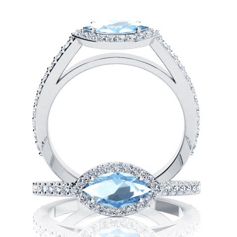 3/4 Carat Marquise Shape Aquamarine and Halo Diamond Ring In 14 Karat White Gold