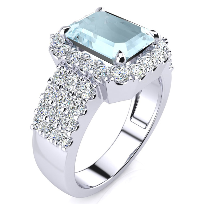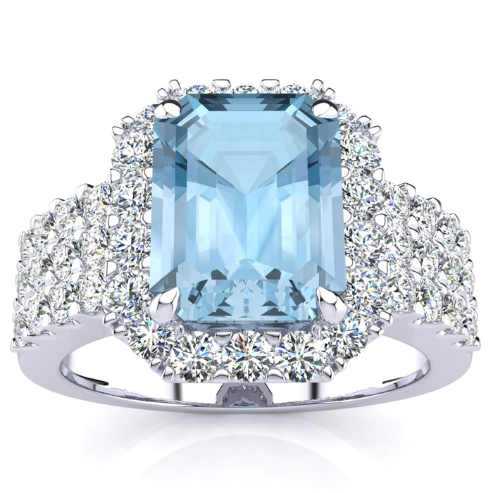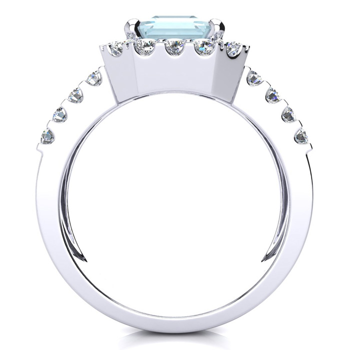 3 Carat Aquamarine and Halo Diamond Ring In 14 Karat White Gold