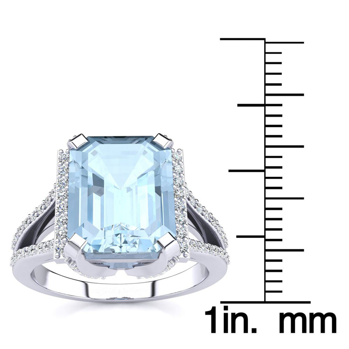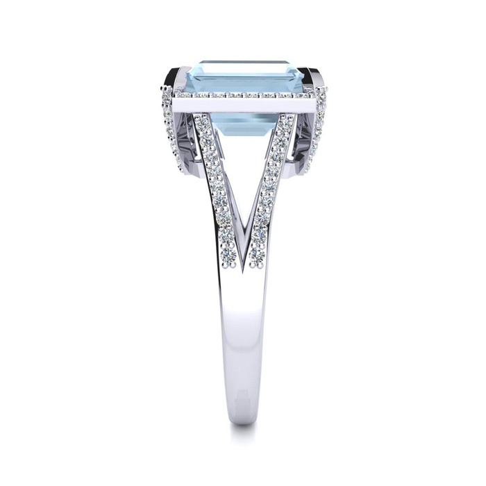4 Carat Aquamarine and Halo Diamond Ring In 14 Karat White Gold