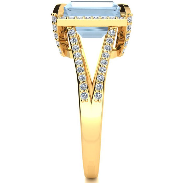 4 Carat Aquamarine and Halo Diamond Ring In 14 Karat Yellow Gold