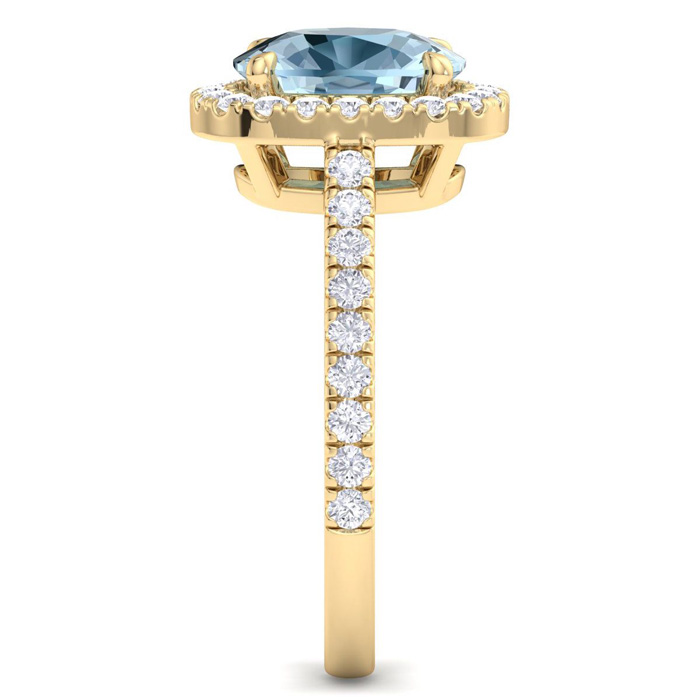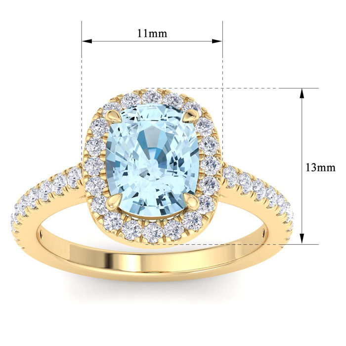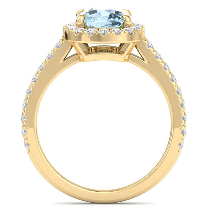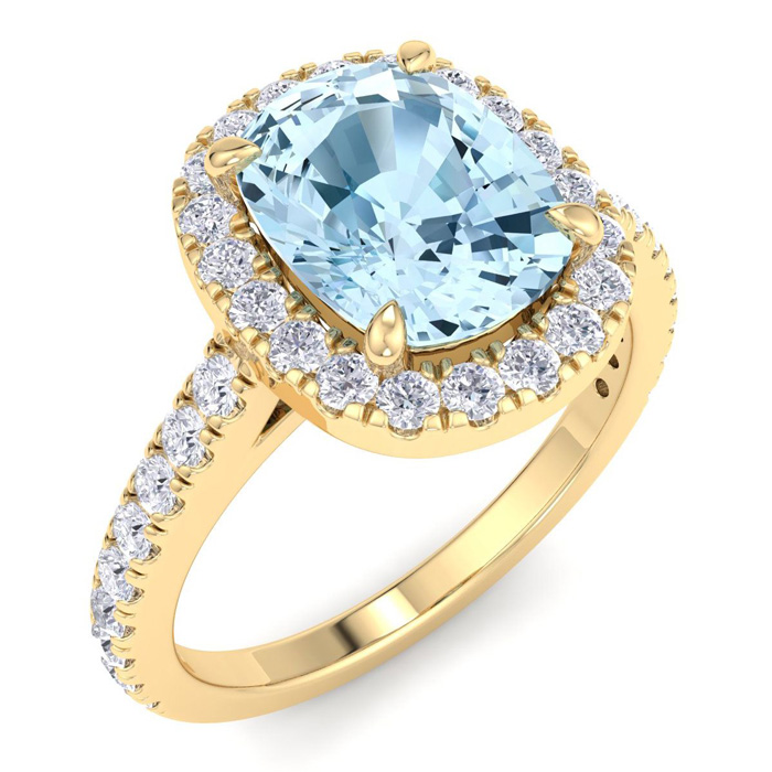 2 1/4 Carat Cushion Shape Aquamarine and Halo Diamond Ring In 14K Yellow Gold