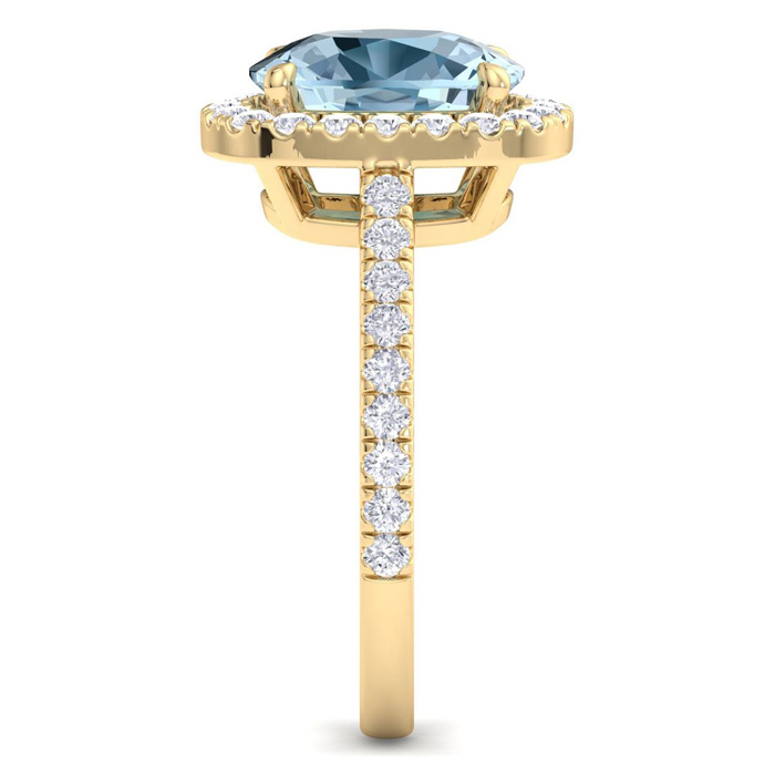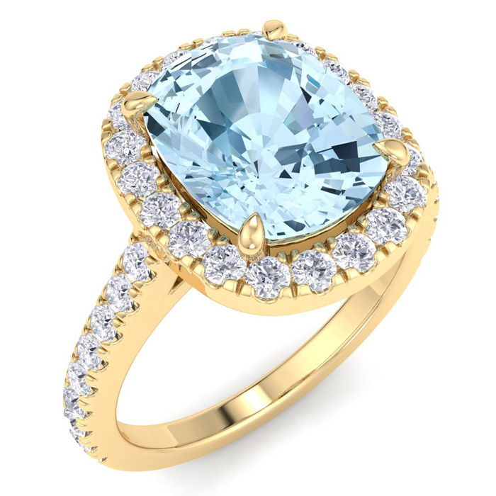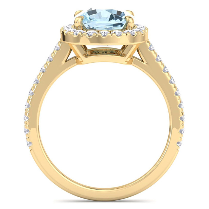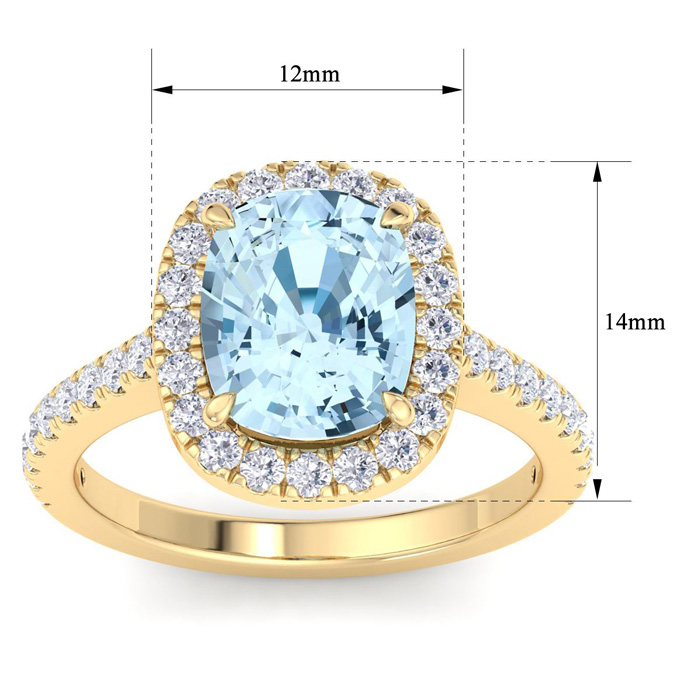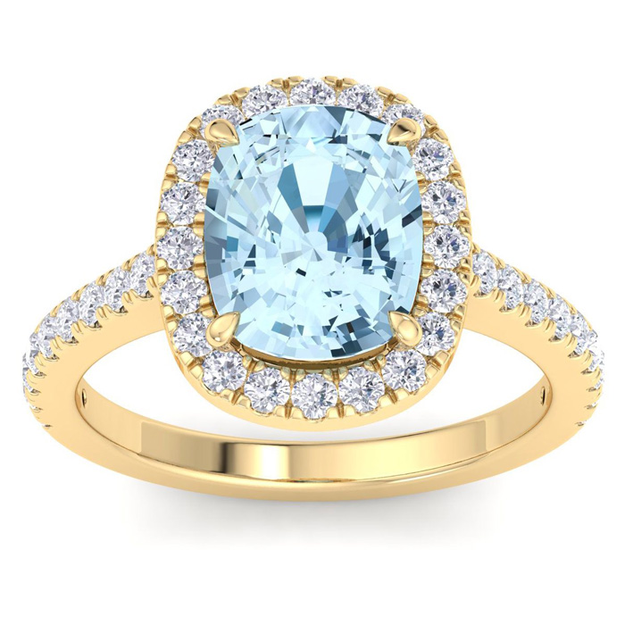 2 3/4 Carat Cushion Shape Aquamarine and Halo Diamond Ring In 14K Yellow Gold