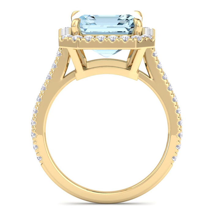 3 1/4 Carat Octagon Shape Aquamarine and Halo Diamond Ring In 14K Yellow Gold