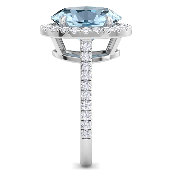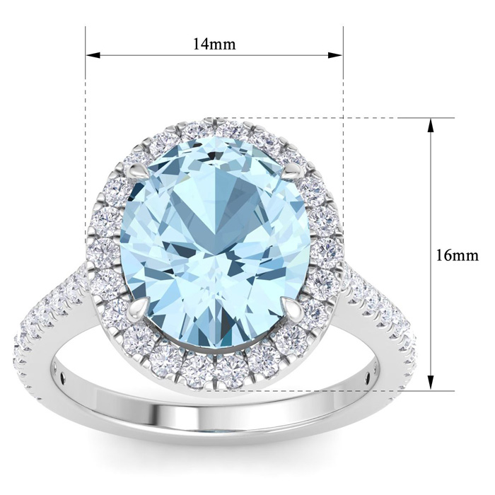 4 1/2 Carat Oval Shape Aquamarine and Halo Diamond Ring In 14K White Gold