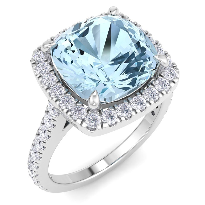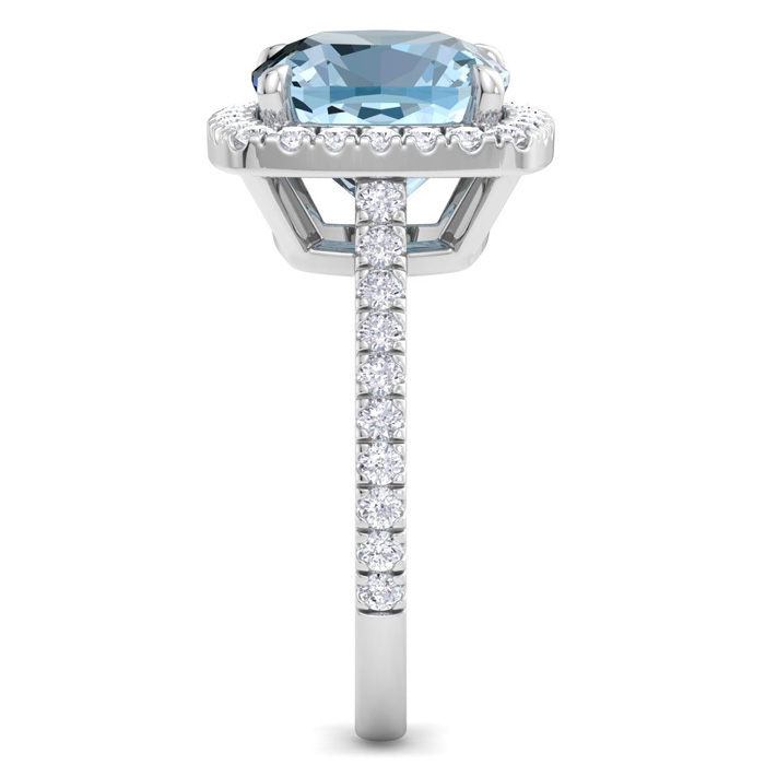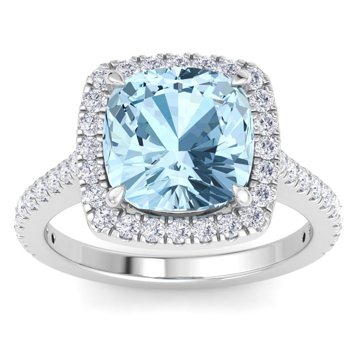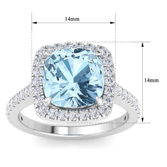 4 1/4 Carat Cushion Shape Aquamarine and Halo Diamond Ring In 14K White Gold