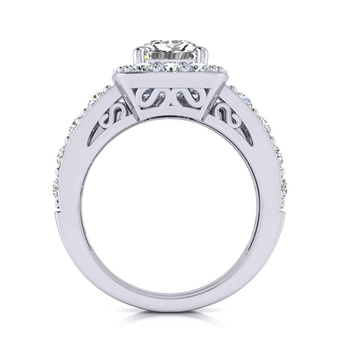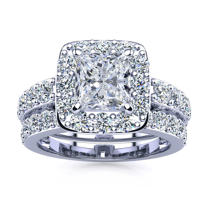 Band ONLY For 4 1/4 Carat Princess Halo Natural Diamond Bridal Set in 14k White Gold