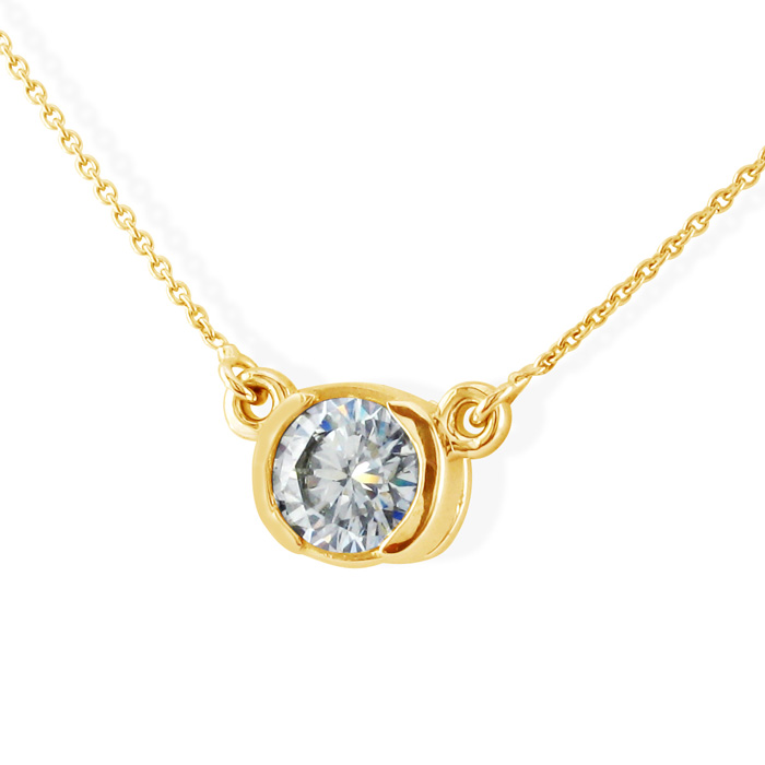 This necklace is absolutely fabulous. The diamond is perfect in size and the chain is not too long as I wanted it as a clavicle length. It is so feminine yet the diamond is large enough to make a statement. The chain sparkles as if it were crafted with a laser. I am so pleased with this purchase. No where else could I find such a value. Superjeweler makes me happy!--tammyc717.