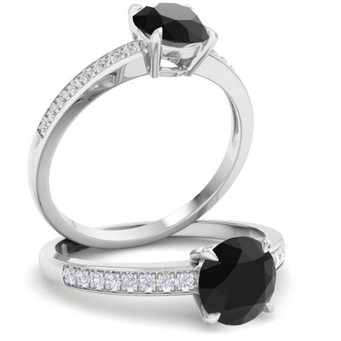 1 1/4 Carat Black Diamond Engagement Ring In 14K White Gold
