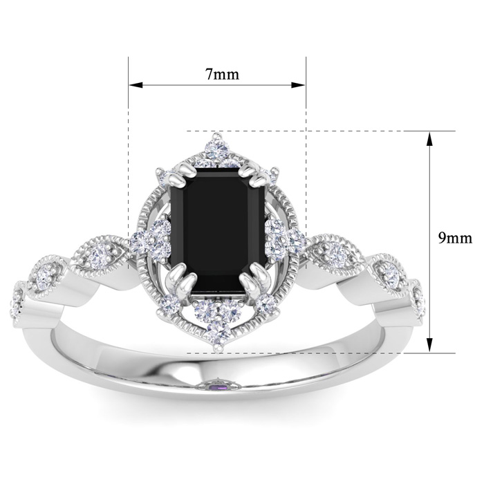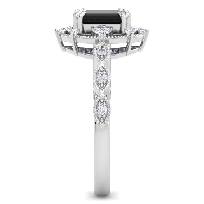 1 Carat Octagon Shape Black Diamond Engagement Ring In 14K White Gold