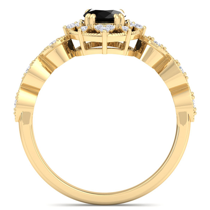 Retrograde Birthstones™ 1 Carat Oval Shape Black Diamond Engagement Ring In 14K Yellow Gold