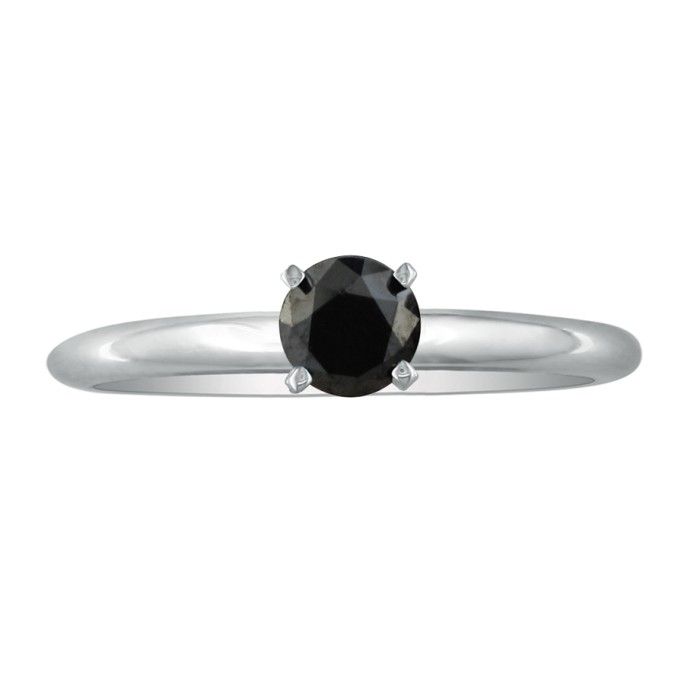 10 karat white gold color enhanced black diamond solitaire ring. Diamond content is 3/4 carat in I2-I3 clarity.