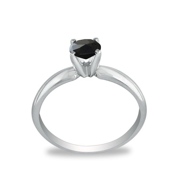 10 karat white gold color enhanced black diamond solitaire ring. Diamond content is 3/4 carat in I2-I3 clarity.