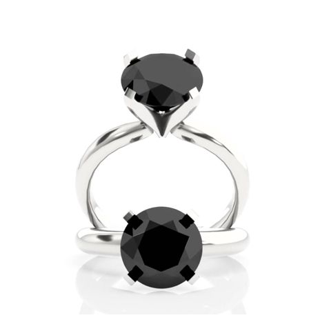 4 Carat Black Diamond Solitaire Engagement Ring In 14 Karat White Gold