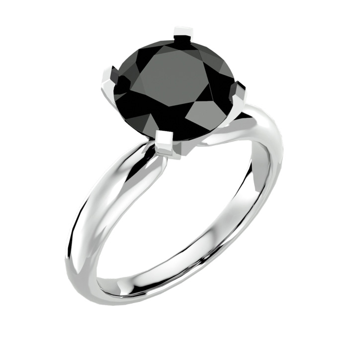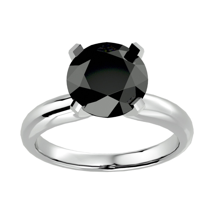 4 Carat Black Diamond Solitaire Engagement Ring In 14 Karat White Gold