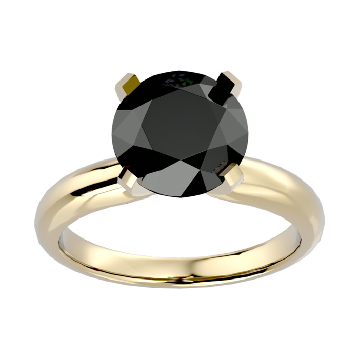 4 Carat Black Diamond Solitaire Engagement Ring In 14 Karat Yellow Gold