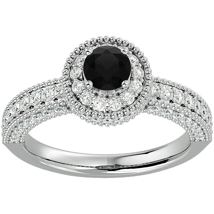 1 1/2 Carat Black Diamond Halo Engagement Ring In 14 Karat White Gold