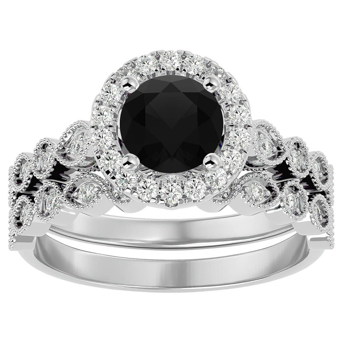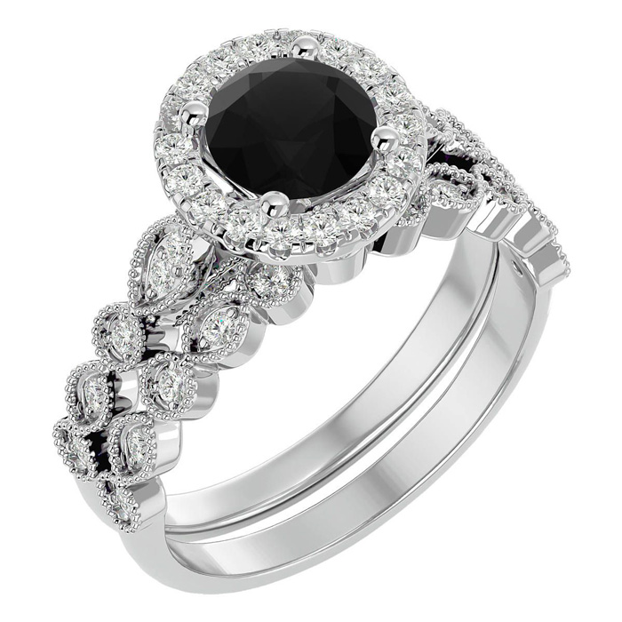 1 1/2 Carat Halo Black Diamond Bridal Set In 14 Karat White Gold