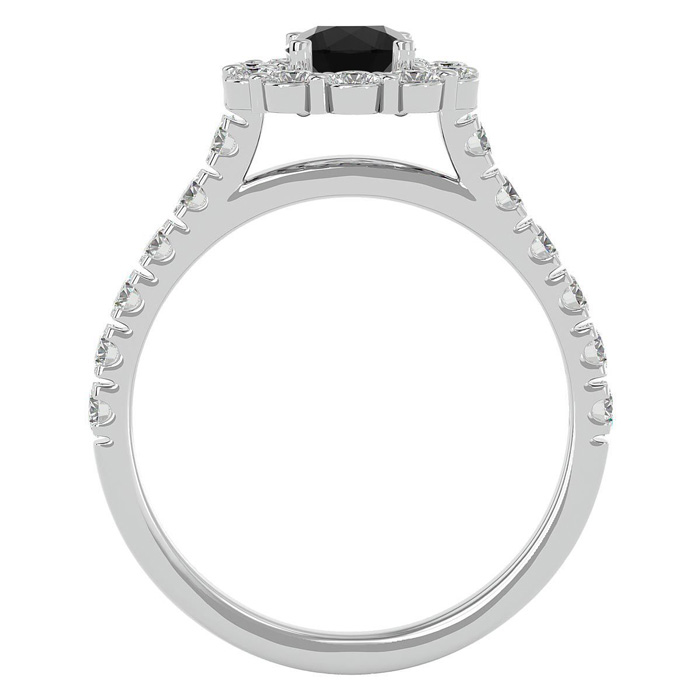 1 1/2 Carat Halo Black Diamond Engagement Ring In 14 Karat White Gold