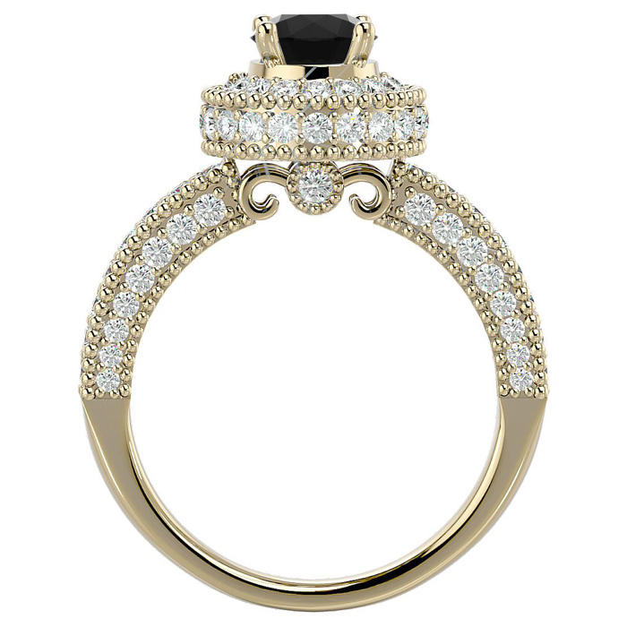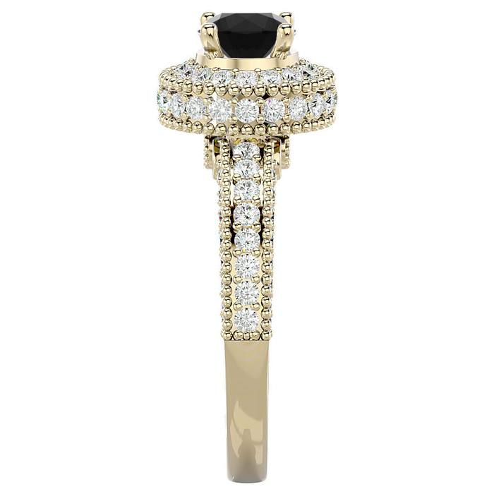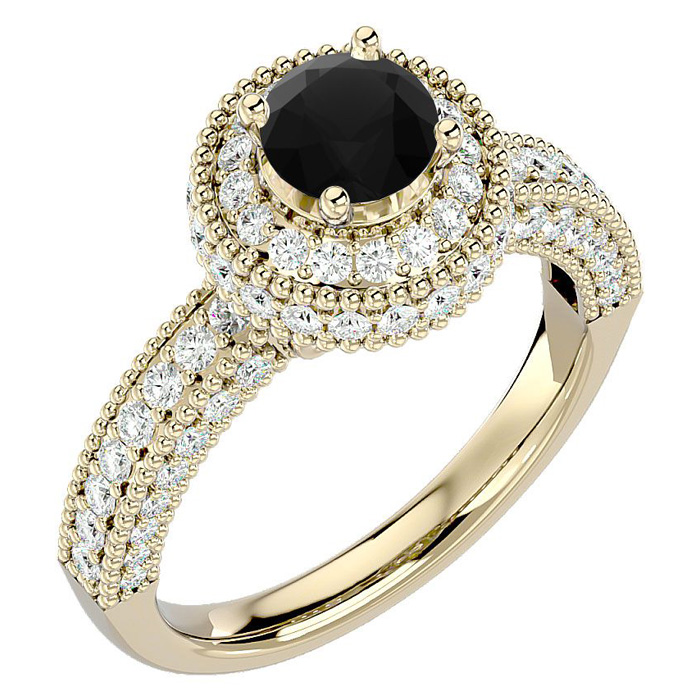 1 3/4 Carat Black Diamond Halo Engagement Ring In 14 Karat Yellow Gold