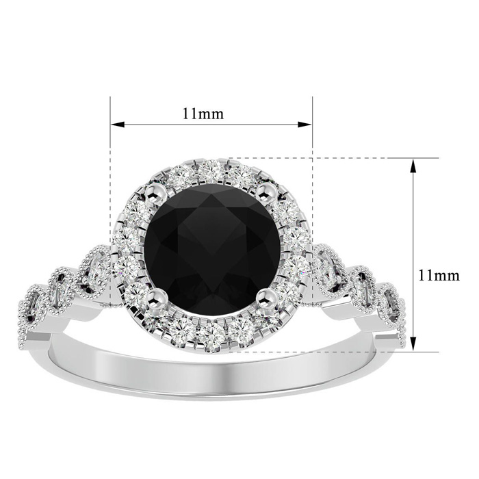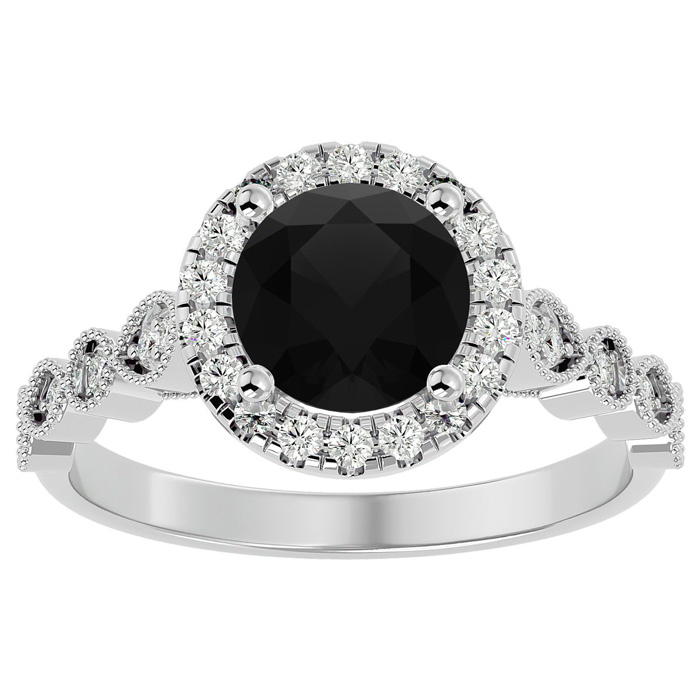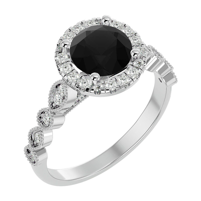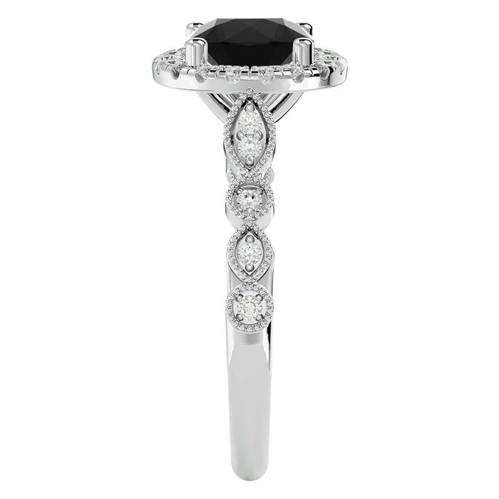 1 3/4 Carat Halo Black Diamond Engagement Ring In 14 Karat White Gold
