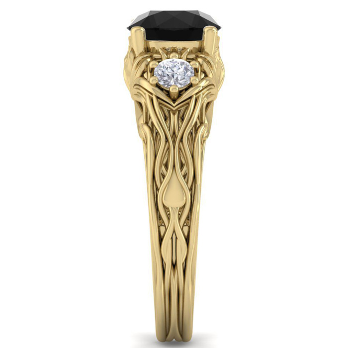 1 3/4 Carat Round Shape Black Diamond Intricate Vine Engagement Ring In 14 Karat Yellow Gold
