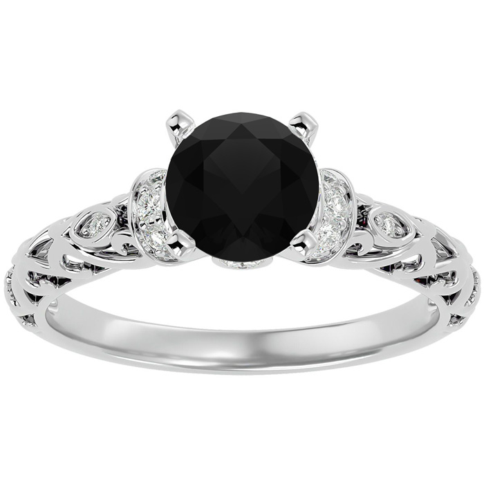 1 3/4 Carat Vintage Black Diamond Engagement Ring In 14 Karat White Gold