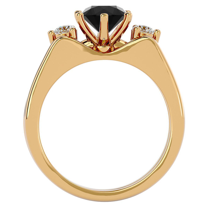 1 Carat Black Diamond Solitaire Ring With 1/5 Carat Enhancer In 14 Karat Yellow Gold