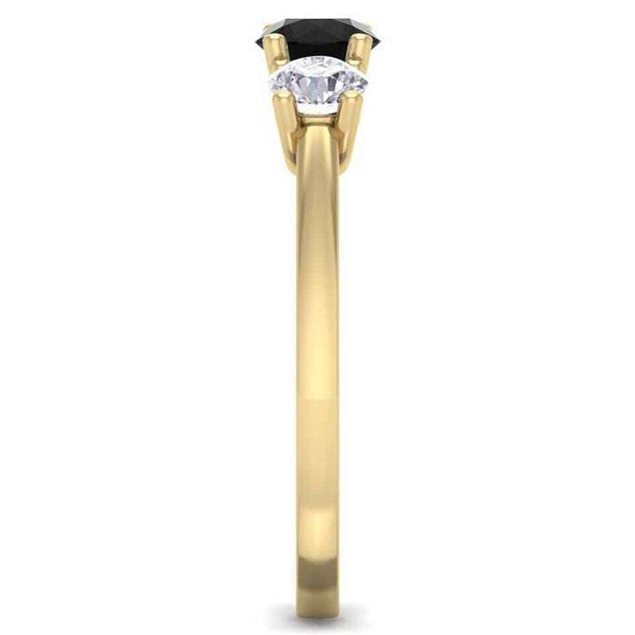 1 Carat Black Diamond Three Stone Ring In 14 Karat Yellow Gold