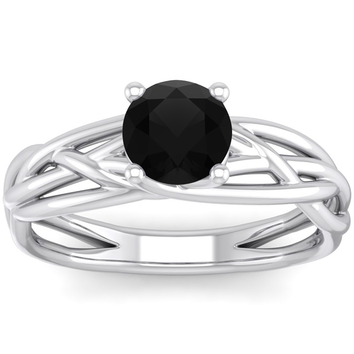 1 Carat Round Black Diamond Solitaire Intricate Vine Engagement Ring In 14 Karat White Gold