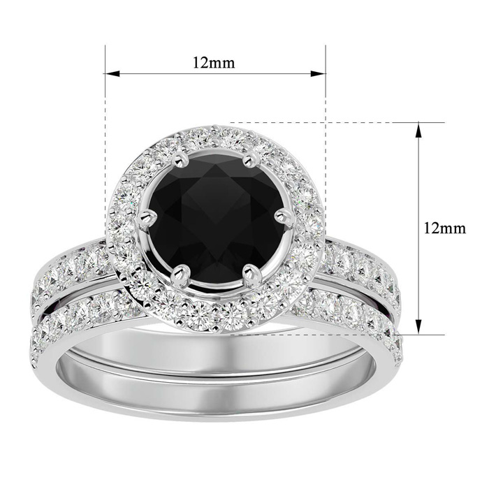 2 1/2 Carat Black Diamond Halo Bridal Set In 14 Karat White Gold With 1 1/2 Carat Center Diamond