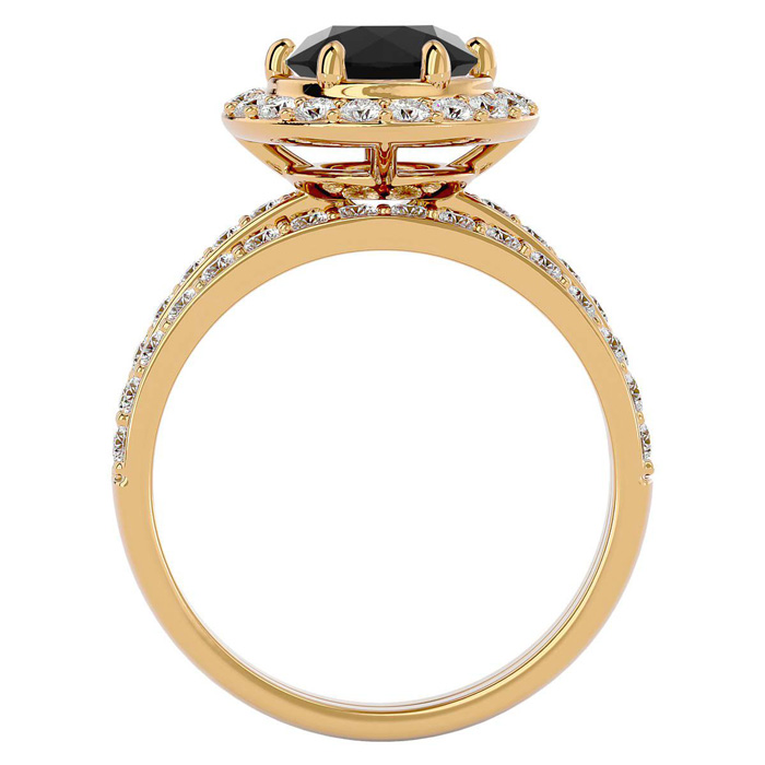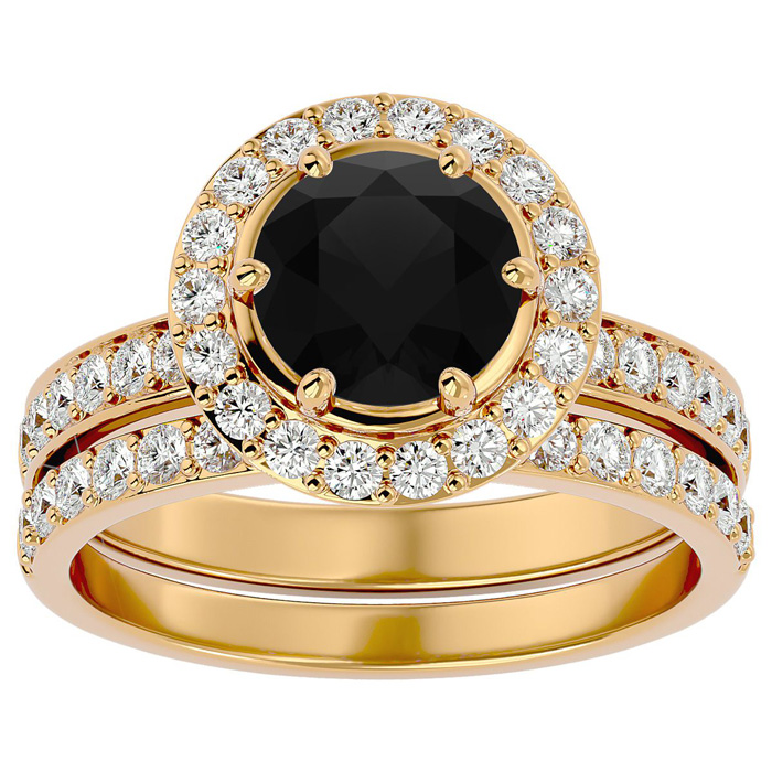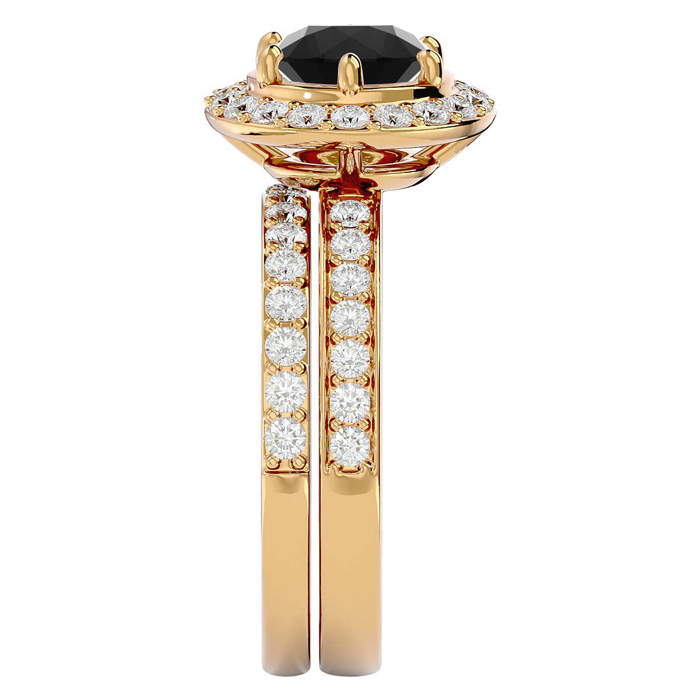 2 1/2 Carat Black Diamond Halo Bridal Set In 14 Karat Yellow Gold With 1 1/2 Carat Center Diamond