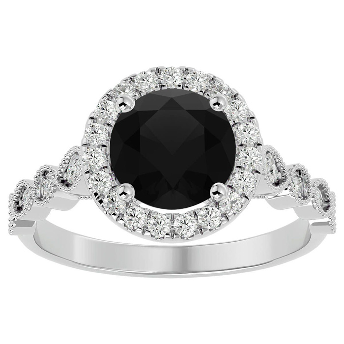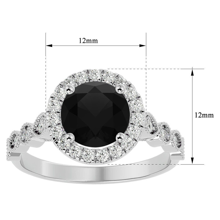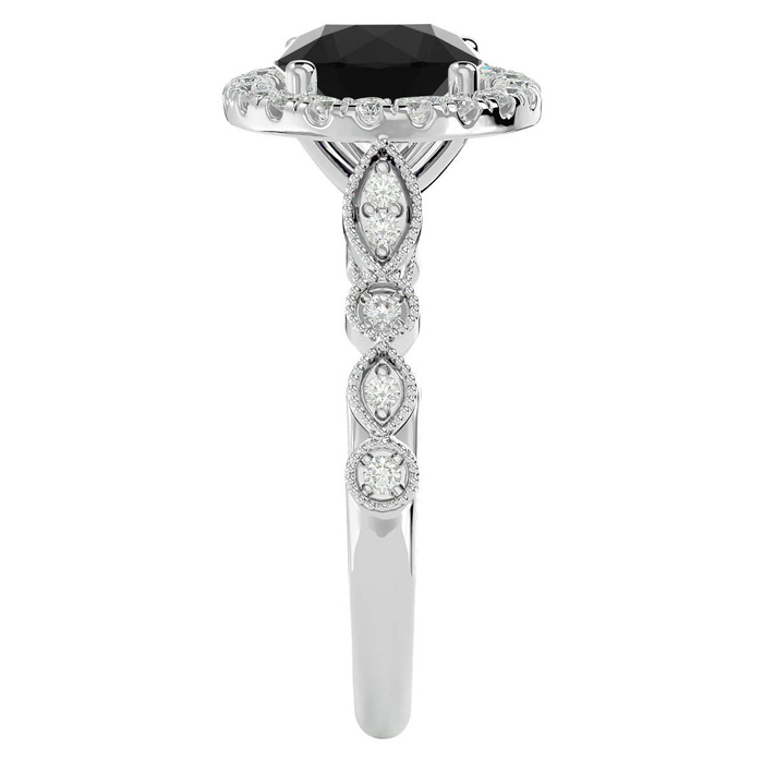 2 1/2 Carat Halo Black Diamond Engagement Ring In 14 Karat White Gold