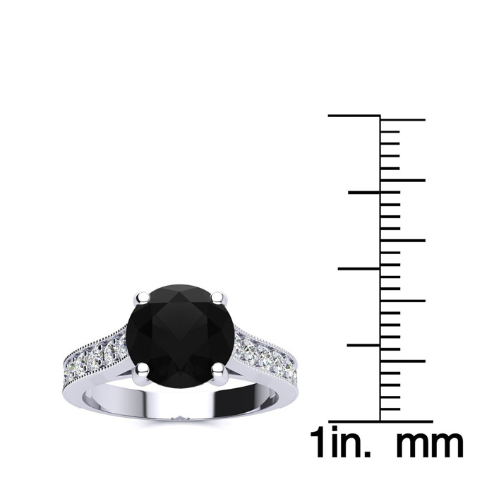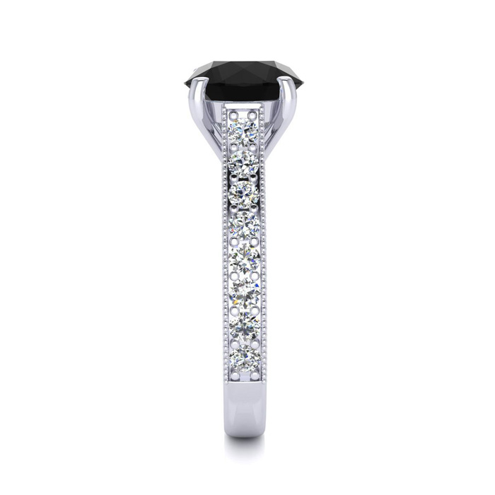 2 1/2 Carat Round Shape Black Diamond Engagement Ring In 14 Karat White Gold