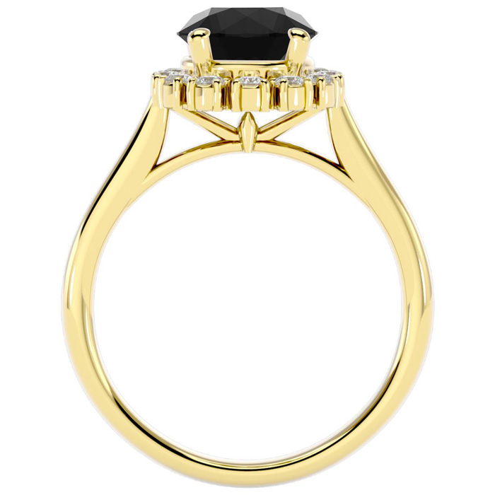 2 1/3 Carat Halo Black Diamond Engagement Ring In 14 Karat Yellow Gold